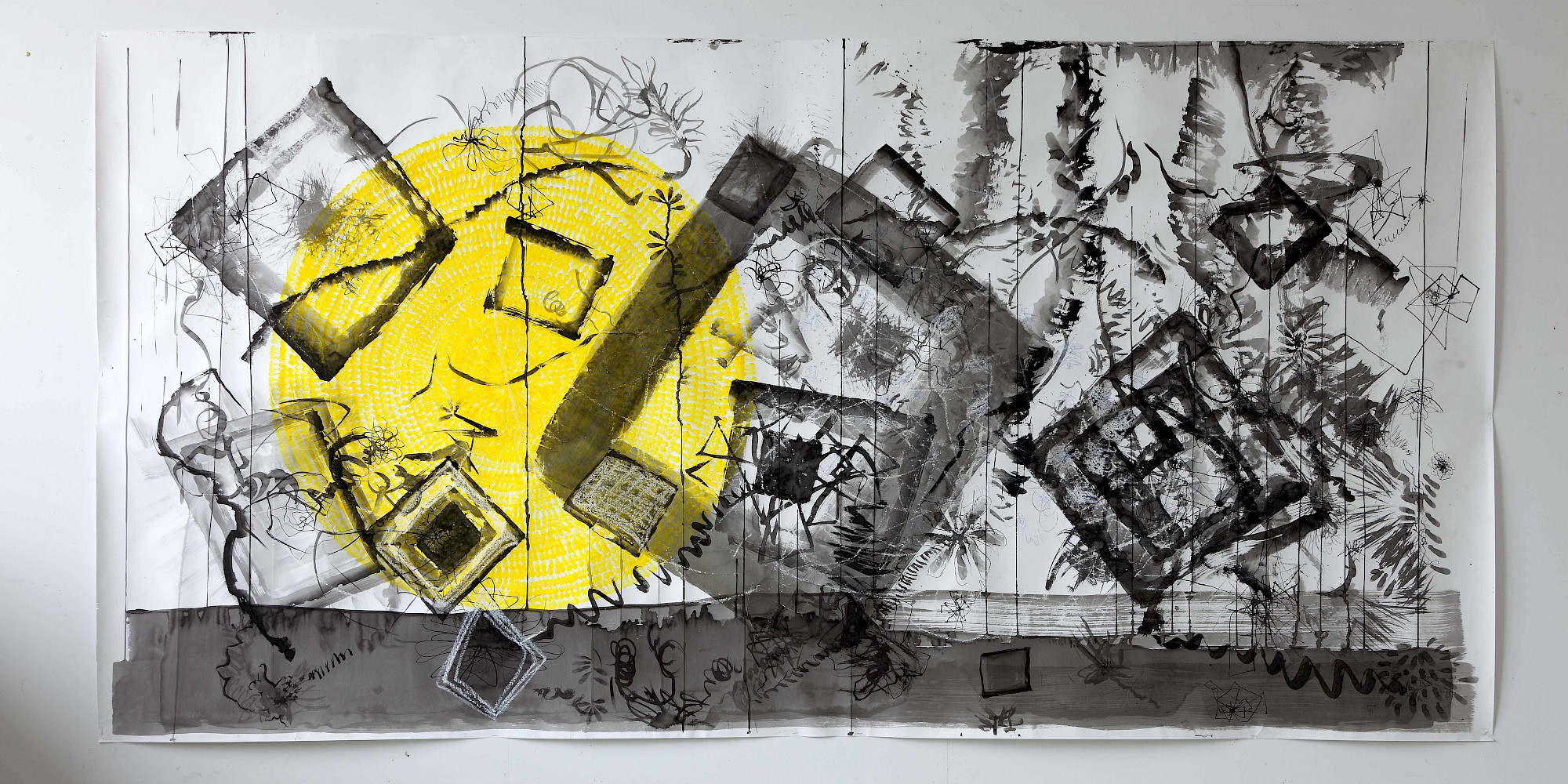 The 2020s 2024, black pencil and ink on paper 76 x 170cm