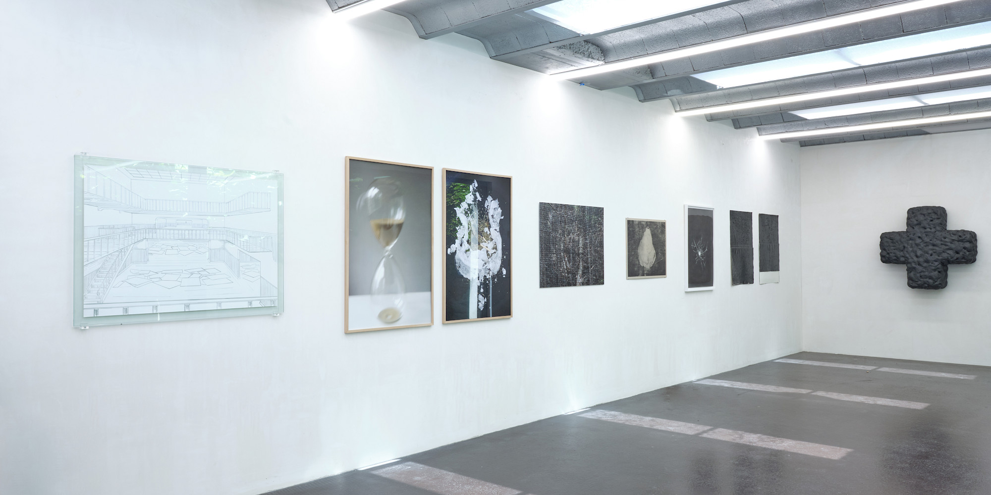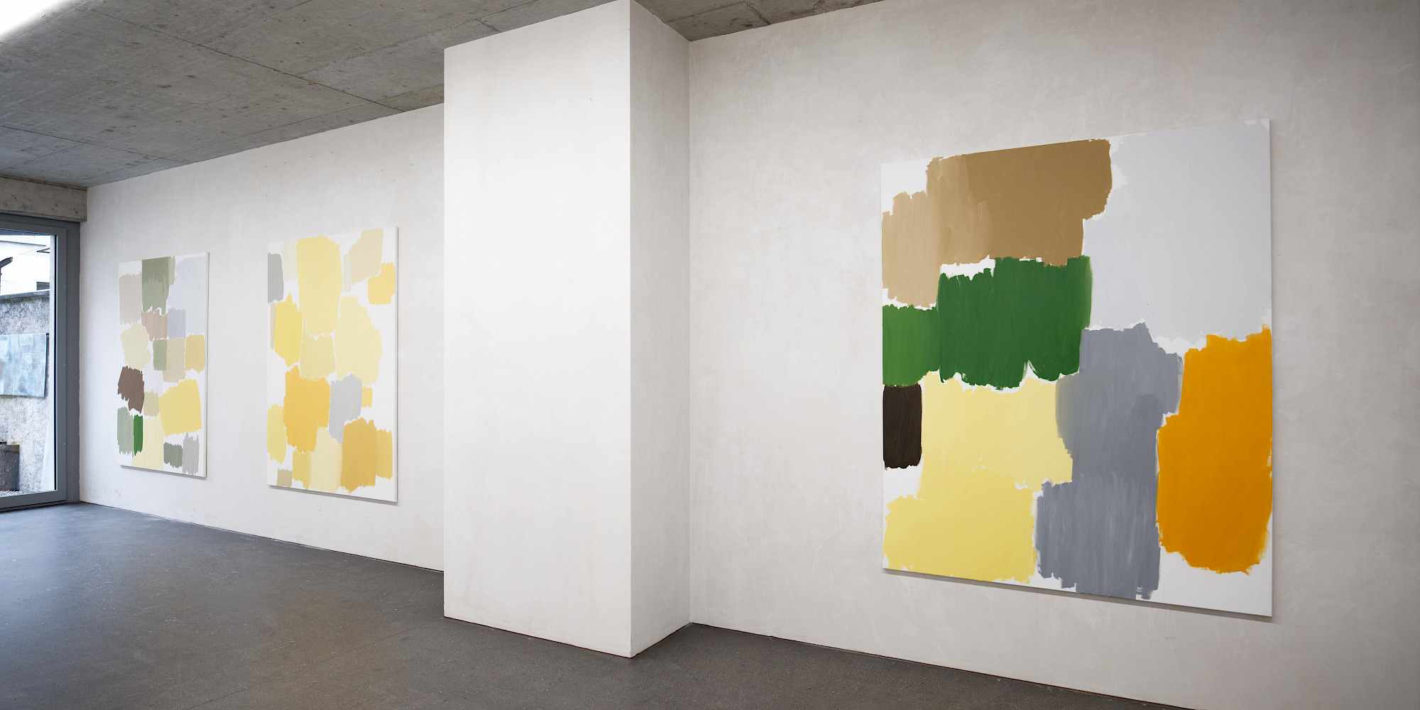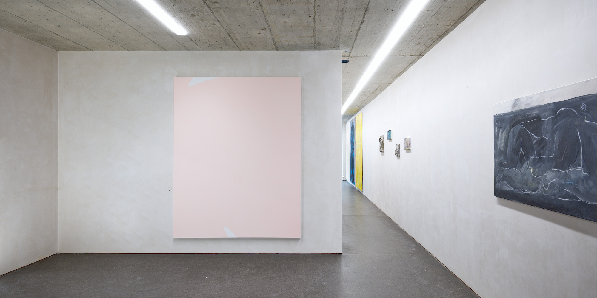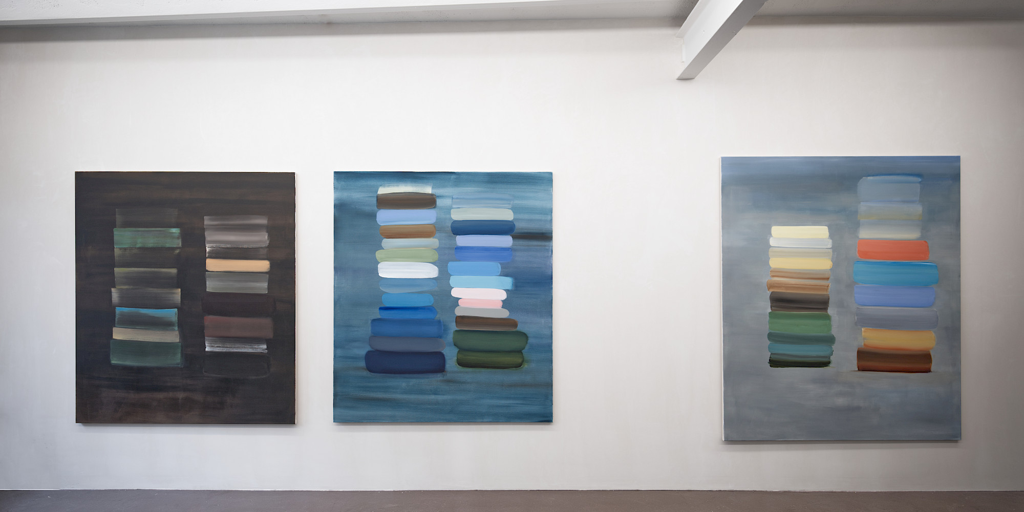Der Ausgangspunkt für viele Arbeiten von Yvo Hartmann sind oft im Alltag vorgefundene Proportionen und Baumaterialien. Er interessiert sich weniger für das erzählerische Motiv als die Konstruktion eines Werks: Ein Modul wird gesetzt, wiederholt, minimal verschoben; Ordnung entsteht aus Rapport und Differenz.
