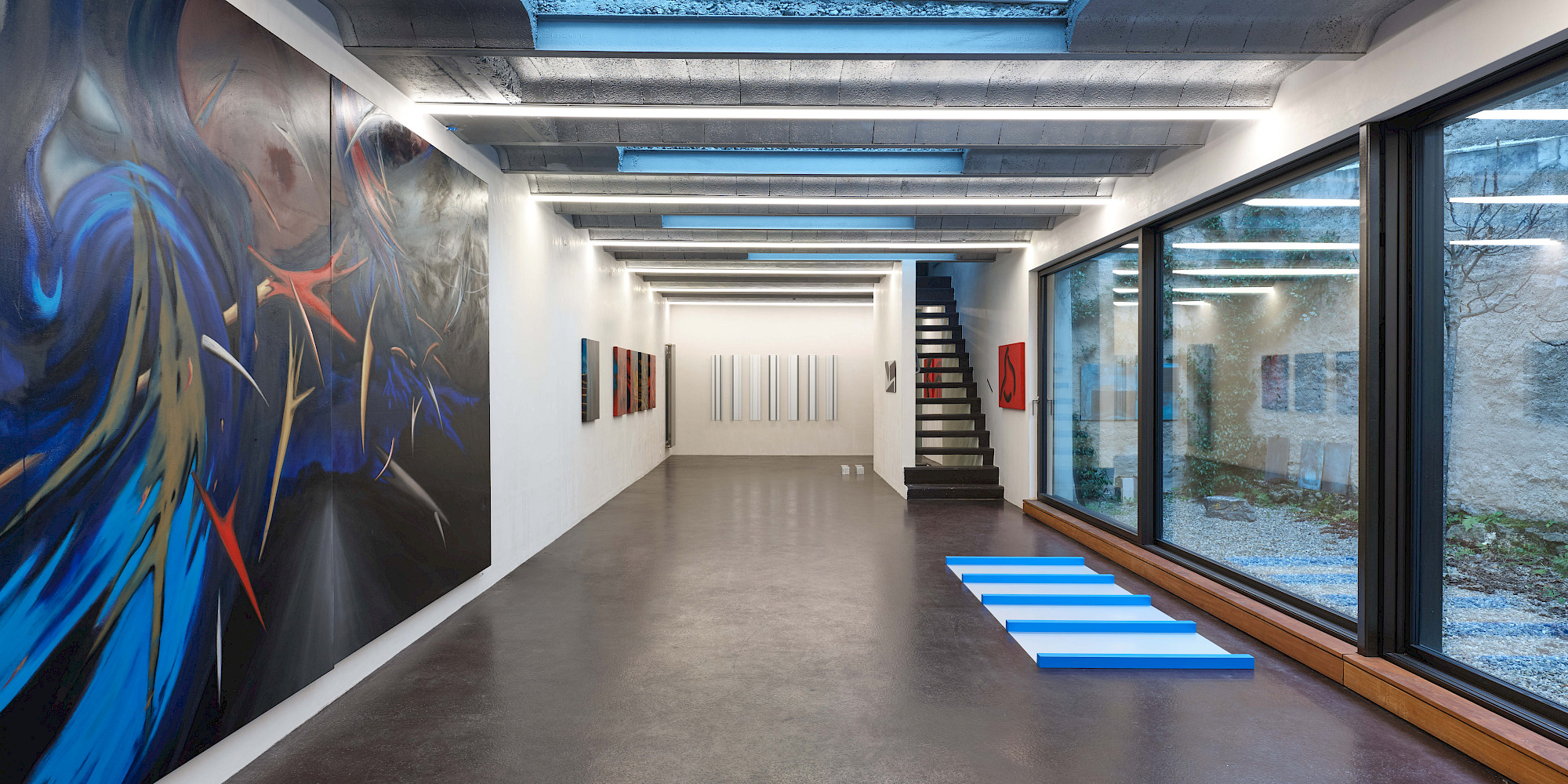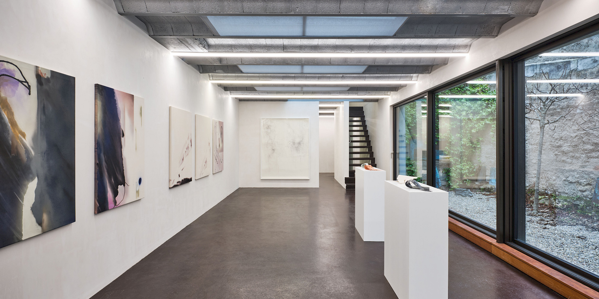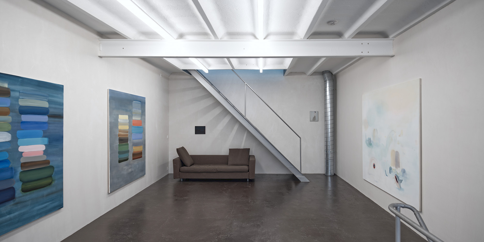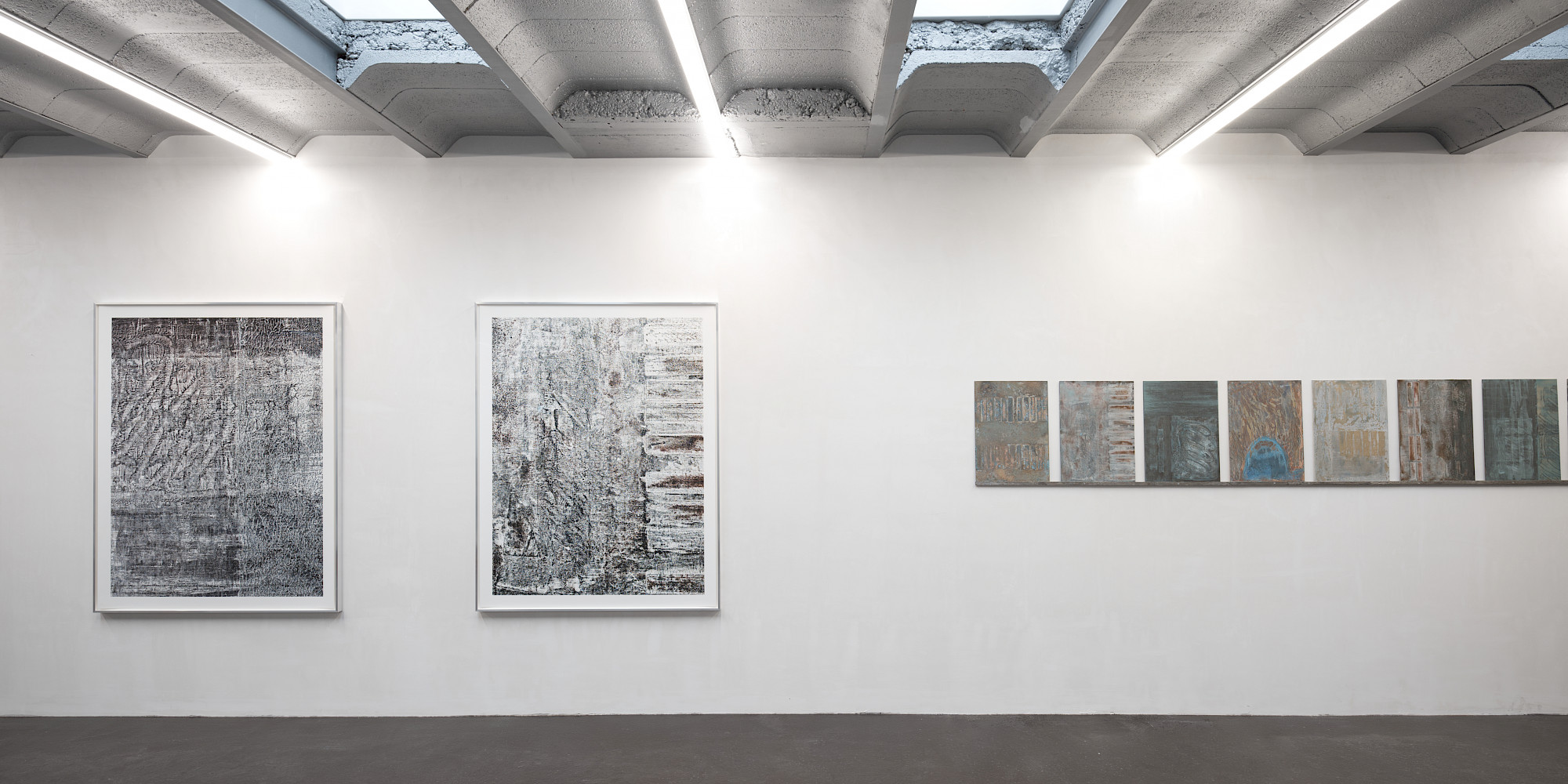 Der Ausgangspunkt für viele Arbeiten von Yvo Hartmann sind oft im Alltag vorgefundene Proportionen und Baumaterialien. Er interessiert sich weniger für das erzählerische Motiv als die Konstruktion eines Werks: Ein Modul wird gesetzt, wiederholt, minimal verschoben; Ordnung entsteht aus Rapport und Differenz.