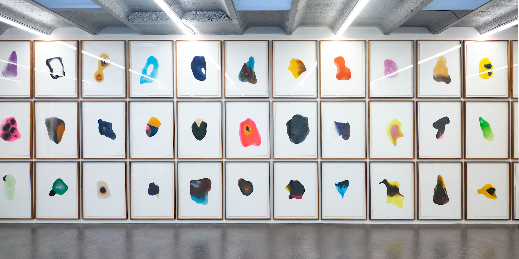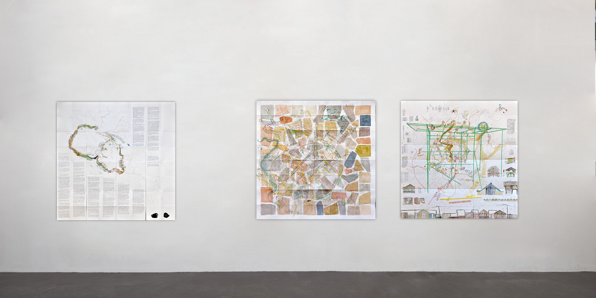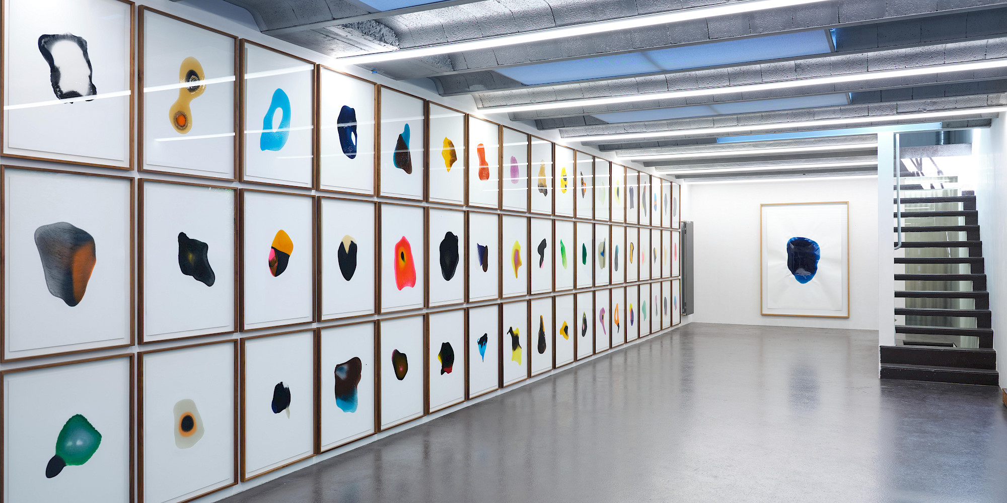 Hartmanns Formate kommen aus gebrauchten, vertrauten Masssystemen. Paradigmatisch ist ein eigens gefertigter Stempel im Format eines Pariser Métro-Tickets: In vielfach wiederholter Setzung wachsen daraus grossformatige, monochromatische Felder. Da jeder Abdruck neu eingefärbt wird, bleibt er ein Unikat; Wiederholung wird hier zur Methode der Differenz.